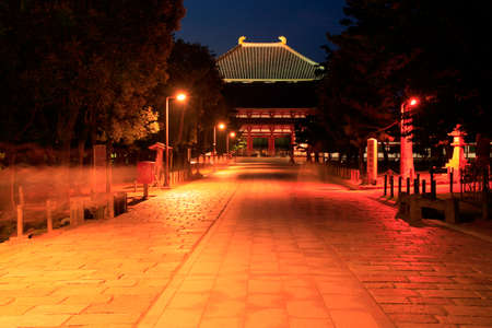 Shinobazunoike Bentendo Temple at night under the light of lanterns.