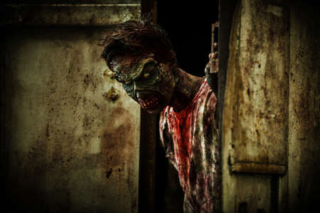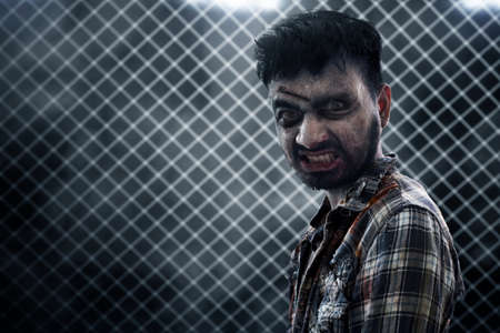 Scary zombie man with blood on his face. Horror Halloween concept.