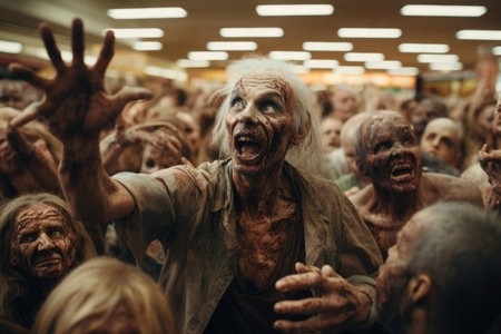 Bloodthirsty zombies in the cemetery. Horror movie. Halloween.