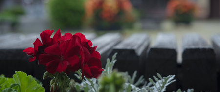 Flowers of red geranium against blurred dark . Can be used as a wallpaper or postcard.