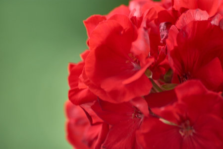 Macro photography of some red zonal geranium flowers. Captured at the Andean mountains of central Colombia.