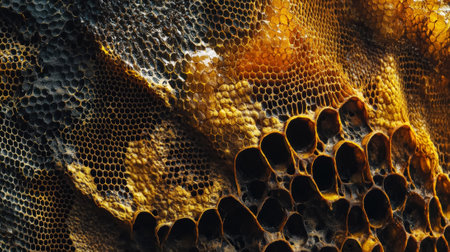 Abstract honeycomb macro texture. Agricultural or industrial layout. Aesthetic trend. Generative AI