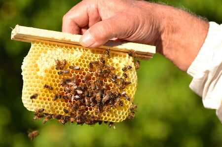 wax frame in bee hive, honey production