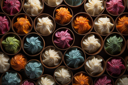Chinese Dumpling top view. generative ai High quality