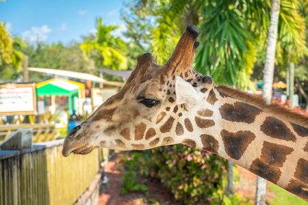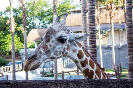 giraffe head in zoo animal summer day