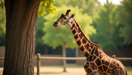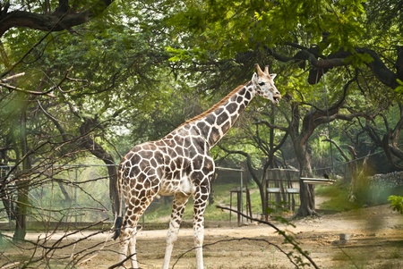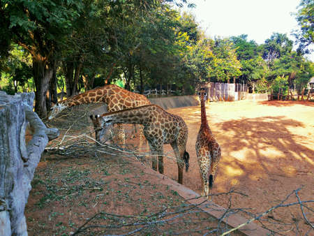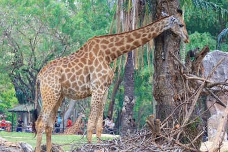 Giraffe and tree in Khao Kiew zoo,Thailand