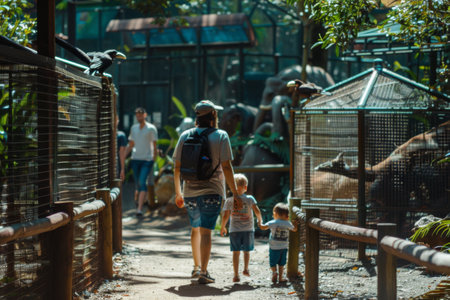 A Family with a Little Kid Visiting the Zoo Outdoors, with the Adult Walking Alongside