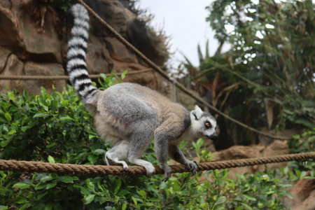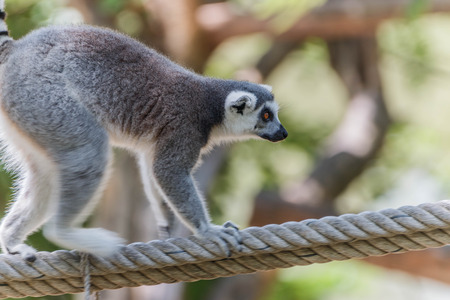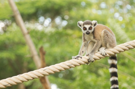Ring-tailed lemur, Lemur catta, sitting on a rope