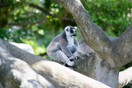 Ring-tailed lemur aka Lemur catta sitting on the tree