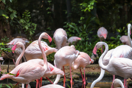 Bangkok, Thailand, November 20 2015.Flamingos are grouped together in this Safari zoo.