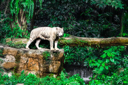 White tiger standing on the edge of the cliff.