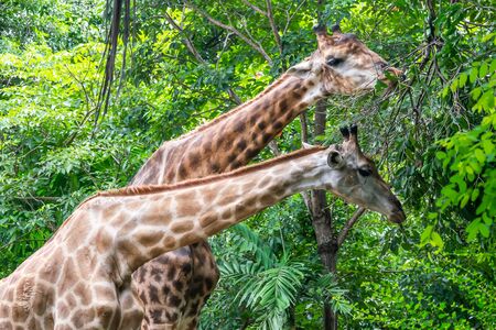 Giraffe zoo in the green forest background and texture