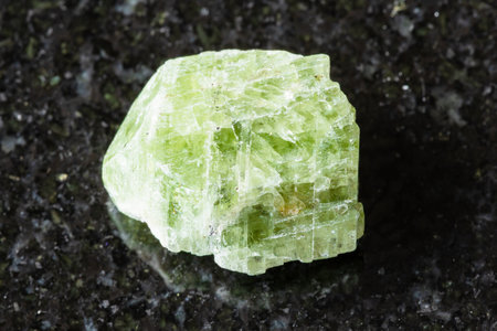 sample of rough diopside crystal on black granite background close up from Afghanistan, Badakhshan