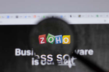 New York, USA - 26 April 2021: Zoho Corporation logo close-up on website page, Illustrative Editorial