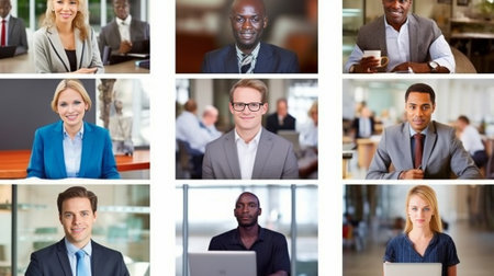 Business collage Collage of diverse multiethnic business people in different business situations : Generative AI