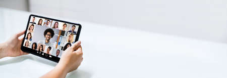 Video conference concept. Telemeeting. Videophone. Teleconference. Remote work