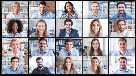 A vibrant collage featuring diverse professionals smiling in a modern office environment, highlighting teamwork, positivity, and collaboration among individuals.