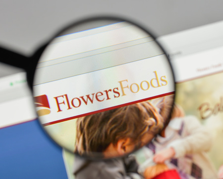Milan, Italy - August 10, 2017: Flowers Foods logo on the website homepage.