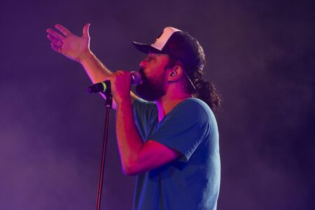 LOULE, PORTUGAL: 31st AUGUST, 2019 - Music artist, Gabriel o Pensador, performs on White Night, a festival on the city of Loule, Portugal.