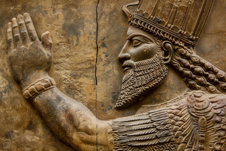 Enduring Ancient Assyrian relief sculpture. Historical archaeology stone carved statuary. Generate ai