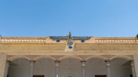Faravahar on Zoroastrian fire temple at Yazd, Iran