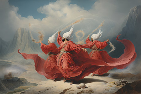 Whirling sand dervishes, harnessing the power of desert winds in mesmerizing dances - Generative AI