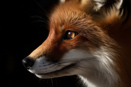 An AI generated illustration of A beautiful red fox, looking away on a black background