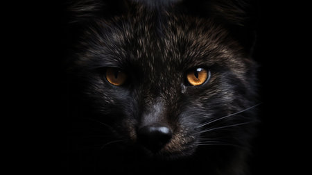 AI Generated. Dramatic close up shot of an orange fox with intense dark background lighting