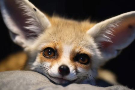 close-up of a fennec foxs eyes illuminated at night, created with generative ai