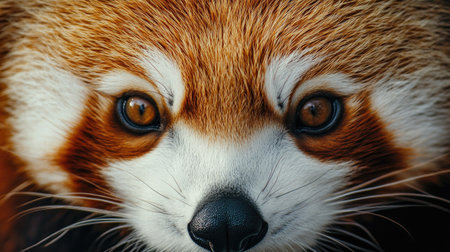 Close-up of a red pandas face with its expressive eyes and soft fur Copy space available