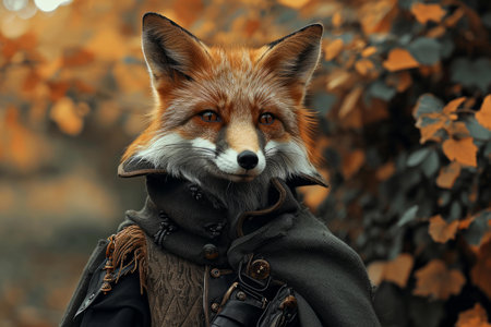 An AI-generated illustration of a fox wearing a vibrant orange coat.