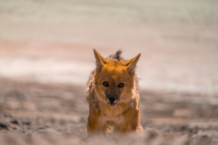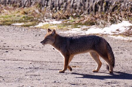 Desert fox near salar de Uyuni in Bolivia, moulting and shedding skin near smelly lake a tourist attraction at the Uyuni salt flats.