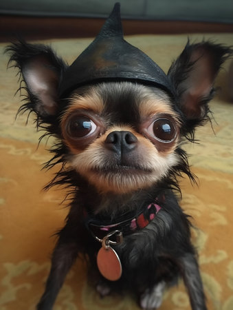 Animal, pet. Chihuahua dog tricolor black white brown.