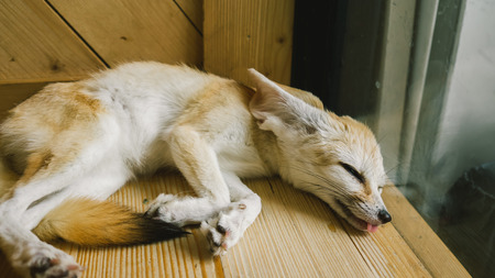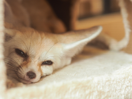 Fennec fox vulpes zerda sleeping peacefully in a curled up position