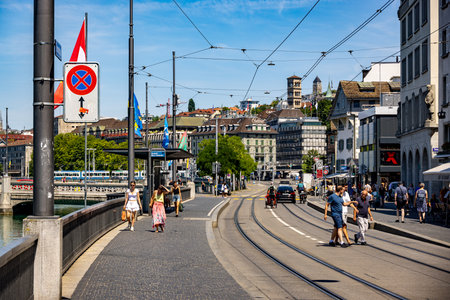 Zurich, Switzerland - 10 June, 2018: tram and buildings of Zurich, Switzerland.