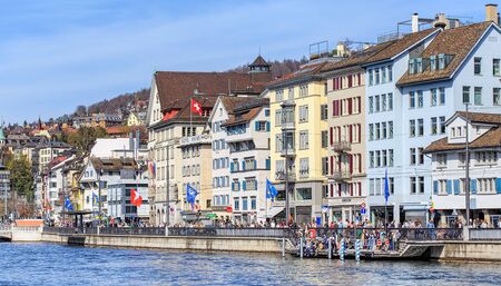 ZURICH SWITZERLAND MAY 14 2015: Inner City of Zurich Switzerland. Old Town at the river