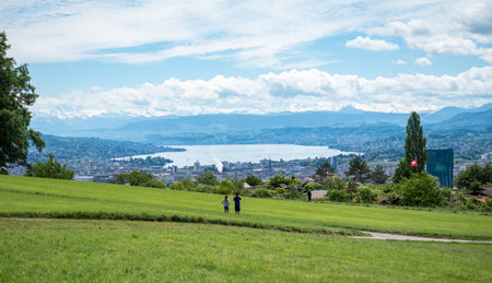 Panaromic view of Zurich city and lake from Uetliberg viewpoint in Switzerland