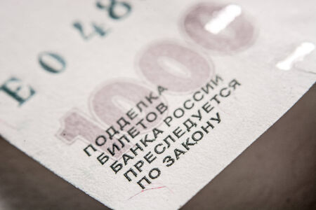 Russian 5000 rubles banknote closeup macro, Russia rouble money close up
