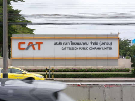 BANGKOK,THAILAND-15 AUGUST 2018: Name Tag CAT Telecom Public Company Limited on, 15 AUGUST 2018 in Thailand.
