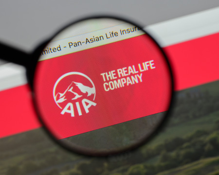 Milan, Italy - August 10, 2017: AIA website homepage. It is the largest independent public listed pan-Asian life insurance group. AIA logo visible.