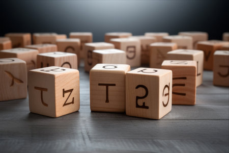 Charming Wooden Cubes: Enigmatic WORD on Textured Gray Background
