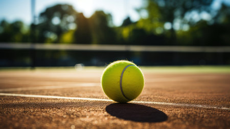 Sunny weather illuminates a green ball mid-air, promising an exhilarating serve and intense gameplay on the tennis court.