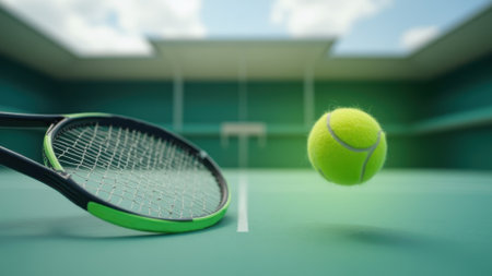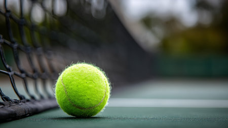 a tennis ball and racket on a tennis court professional photography