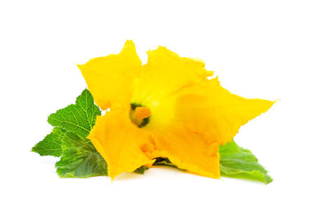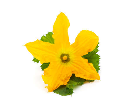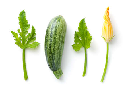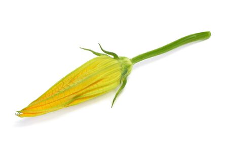 Zucchini flowers isolated on white background. Top view. Organic food.
