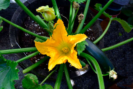 The zucchini plant with yellow flowers, grow in the ground and make that land a nice place