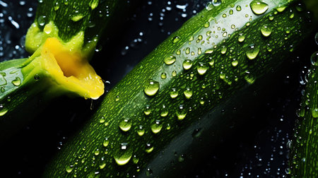 Freshgreen zucchini or courgettes with water drops background. Vegetables backdrop. Generative AI.