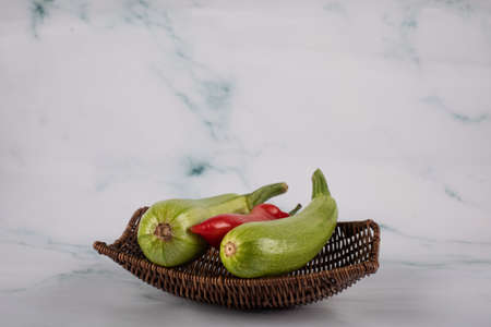 Zucchini. Fresh raw organic zucchini ready for cooking, top view with copy space