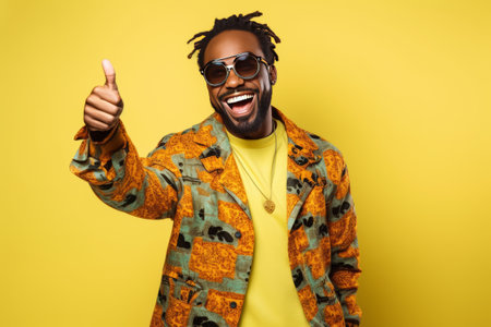 Stylish African American Man Exudes Confidence in Colorful Outfit, Thumbs Up to the Camera on Vibran