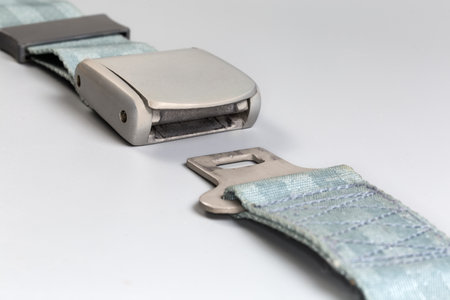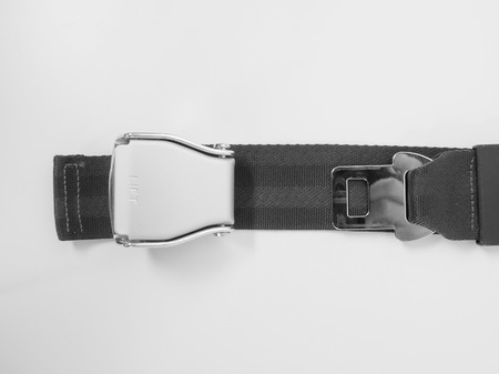 Airplane safety seatbelt closeup with copy space