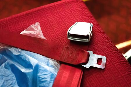 Close up of safety seat belt in the airplane